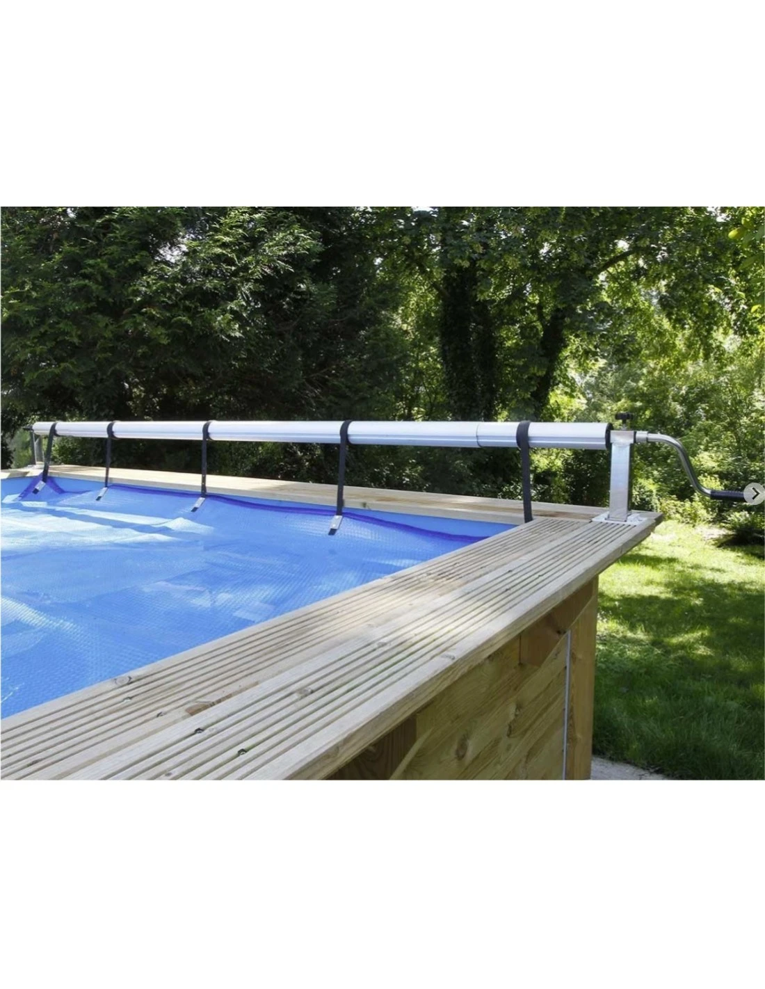 Pour piscines avec margelles tubulaires, métal et béton. Enrouleur amovible extrastable avec supports métalliques à visser au bord de la piscine. Manivelle en aluminium et vis de blocage pour l’enrouleur. Kit de 5 tubes (5 x 1,50 m) réglables à adapter à la largeur de la piscine. Y compris, adaptateur pour bords de piscines à structure en tubes. Destinée pour piscines d’une largeur max de 5,55 m, avec kit d’attaches permettant de fixer la bâche à l’enrouleur. Permets de déplacer de façon pratique l’enrouleur sur un côté pour libérer toute la surface de la piscine une fois la bâche enroulée.