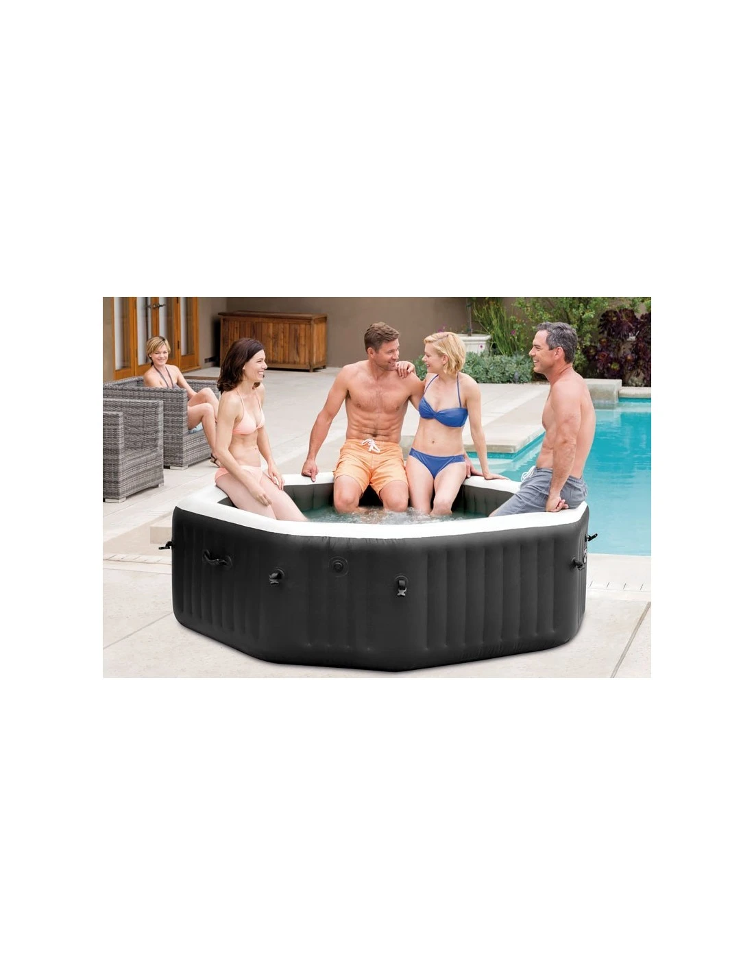 Le spa gonflable Carbone 4 places Intex, avec son design épuré octogonal, est la version la plus haut de gamme.