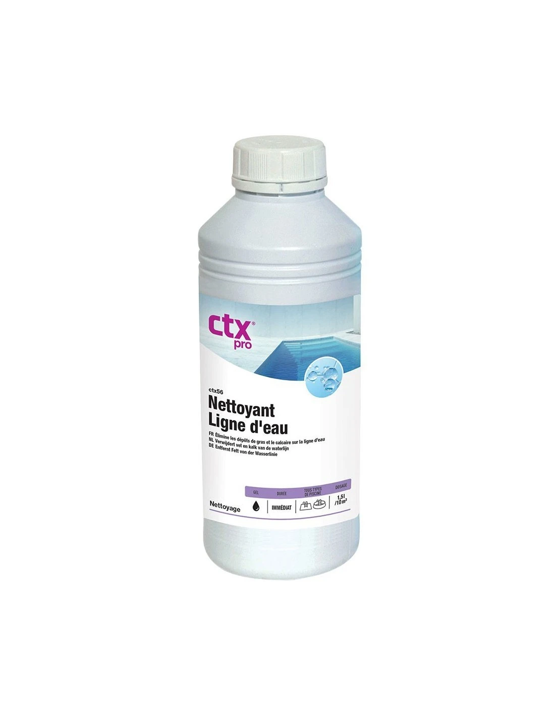 Gel nettoyant aux caractéristiques acides pour éliminer les incrustations calcaires, les résidus organiques et les sédiments minéraux sur la ligne d’eau.