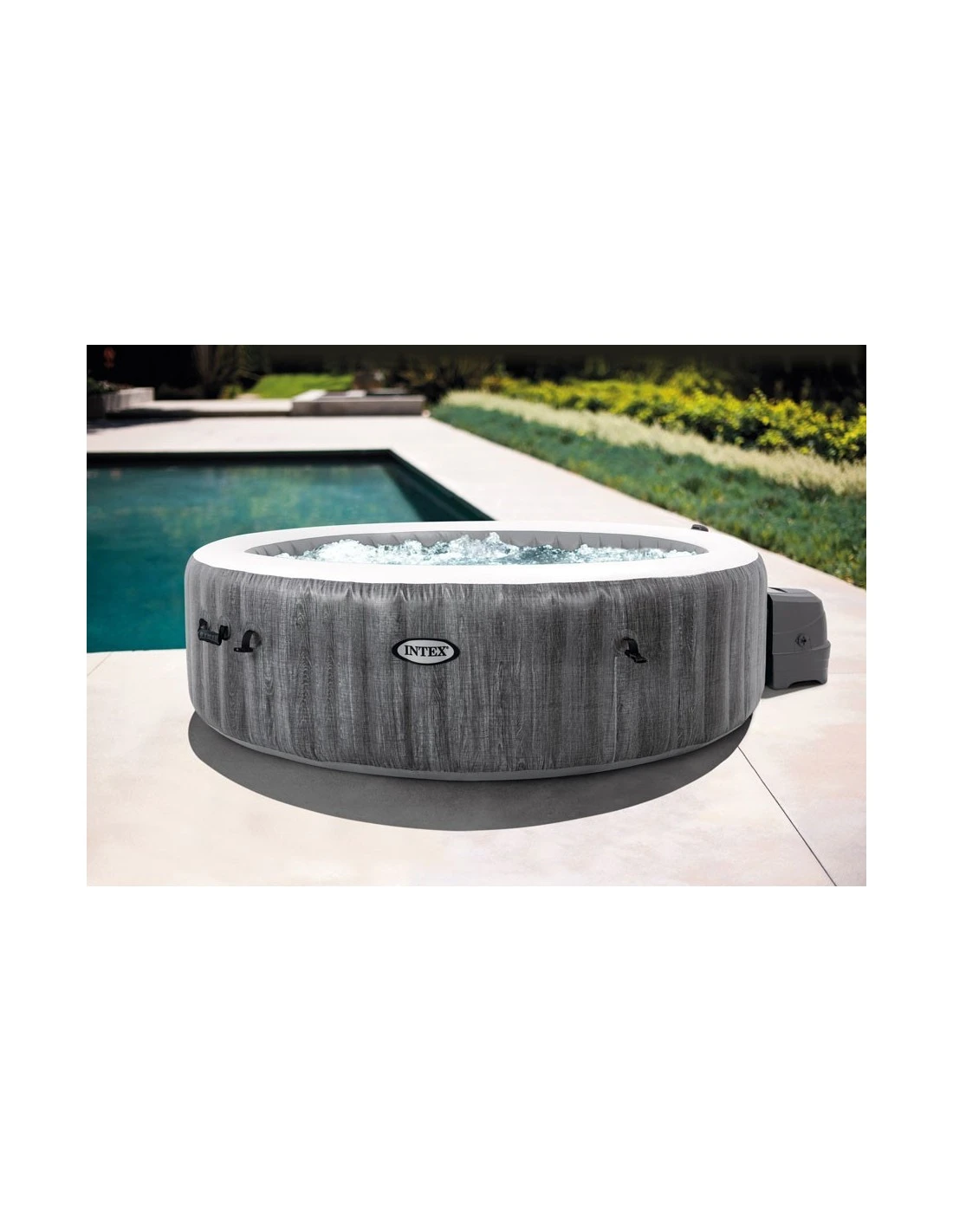 Le PureSpa Greywood 4 places INTEX, avec son design effet bois élégant, deviendra rapidement l’atout majeur de votre extérieur.